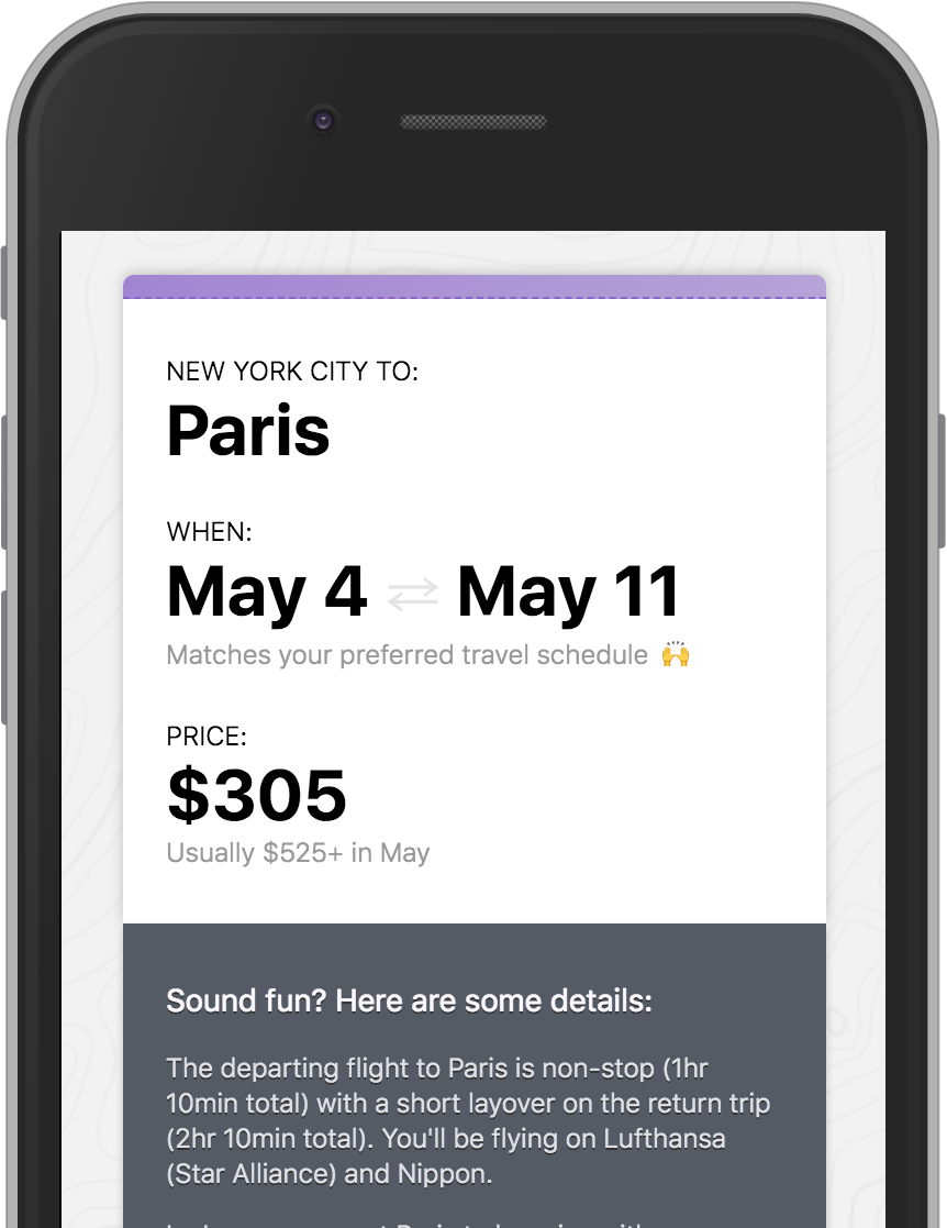Personalized, high quality flight deals in your inbox. Never wonder if you're getting the best deal again.